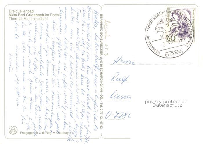 73208766 alte Postkarte Bad Griesbach Rottal Dreiquellenbad Fuerstenhof Thermal Mineralheilbad Fliegeraufnahme postalisch gelaufen Erhaltung siehe scans [FriedD77] KatCode: 11110009275124