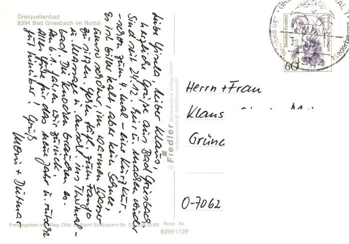 73907734 alte Postkarte Bad Griesbach Rottal Dreiquellenbad postalisch gelaufen Erhaltung siehe scans [WerneD78] KatCode: 11110009275124