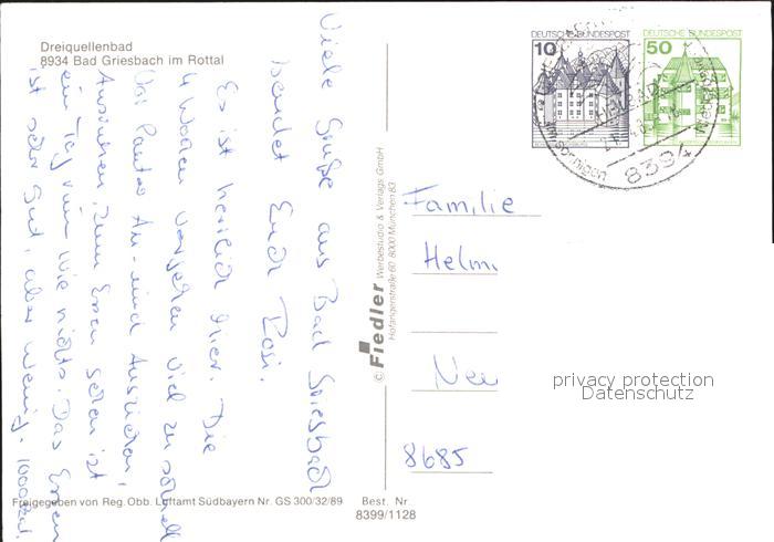 71909370 alte Postkarte Bad Griesbach Rottal Fliegeraufnahme Dreiquellenbad postalisch gelaufen Erhaltung siehe scans KatCode: 11110009275124