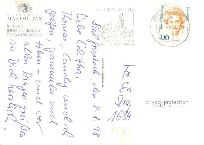 73636793 alte Postkarte Bad Griesbach Rottal Golf Hotel Maximilian Springbrunnen Nachtaufnahme postalisch gelaufen Erhaltung siehe scans [FriedD77] KatCode: 11110009275124