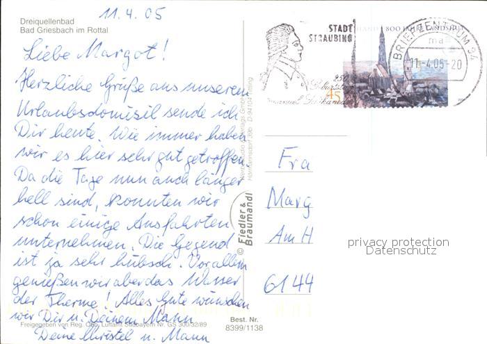 72492678 alte Postkarte Bad Griesbach Rottal Haus Kurpark Kurklinik Passauer Wolf Haus Muenchen Appart Hotel Dreiquellen Bad postalisch gelaufen Erhaltung siehe scans KatCode: 11110009275124