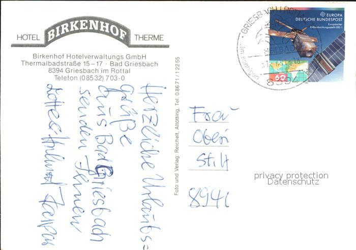 72591412 alte Postkarte Bad Griesbach Rottal Hotel Birkenhof Therme postalisch gelaufen Erhaltung siehe scans [WerneD78] KatCode: 11110009275124