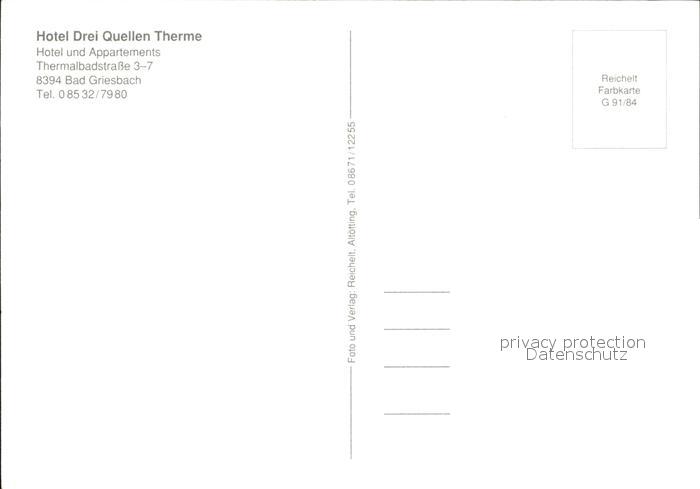 72534272 Bad Griesbach Rottal Hotel Dreiquellen Therme Appartements Restaurant Hallenbad postalisch nicht gelaufen Erhaltung siehe scans [FriedD77 kt118box] KatCode: 11110009275124
