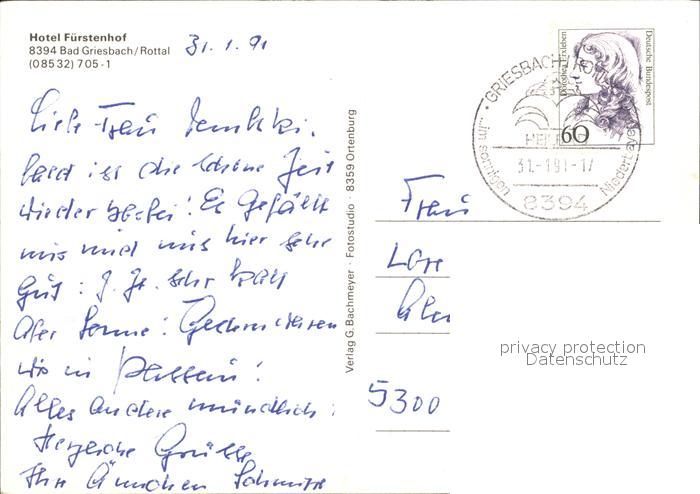 72451254 alte Postkarte Bad Griesbach Rottal Hotel Fuerstenhof Freibad Hallenbad Liegewiese postalisch gelaufen Erhaltung siehe scans KatCode: 11110009275124