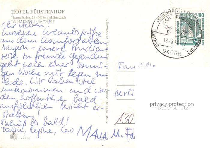 73635632 alte Postkarte Bad Griesbach Rottal Hotel Fuerstenhof Liegewiese Gaststube postalisch gelaufen Erhaltung siehe scans [WerneD78] KatCode: 11110009275124