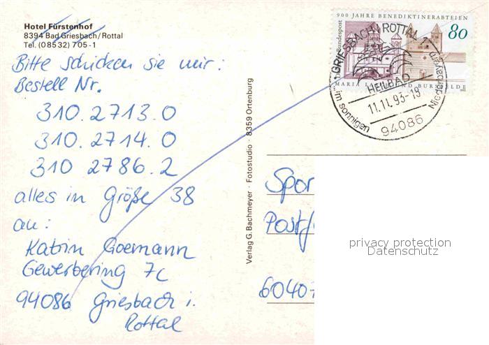 72726470 alte Postkarte Bad Griesbach Rottal Hotel Fuerstenhof Liegewiese postalisch gelaufen Erhaltung siehe scans [FriedD77] KatCode: 11110009275124