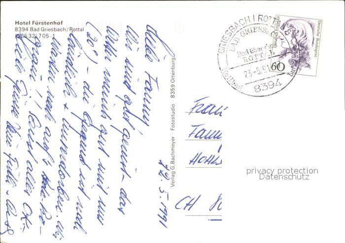 72283597 alte Postkarte Bad Griesbach Rottal Hotel Fuerstenhof Swimming Pool Hallenbad Restaurant Liegewiese postalisch gelaufen Erhaltung siehe scans KatCode: 11110009275124
