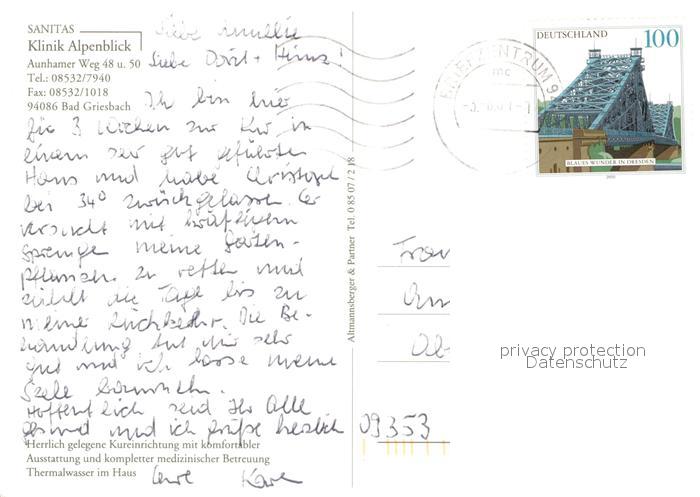 72960122 alte Postkarte Bad Griesbach Rottal Klinik Alpenblick postalisch gelaufen Erhaltung siehe scans [PaolaD17] KatCode: 11110009275124