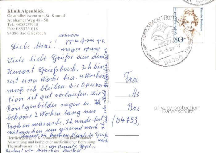 72504401 alte Postkarte Bad Griesbach Rottal Klinik Alpenblick postalisch gelaufen Erhaltung siehe scans KatCode: 11110009275124