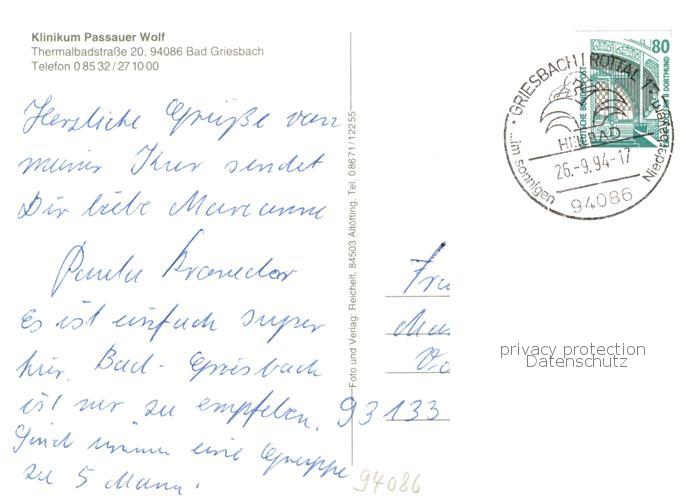 73793618 alte Postkarte Bad Griesbach Rottal Klinikum Passauer Wolf postalisch gelaufen Erhaltung siehe scans [FriedD77] KatCode: 11110009275124