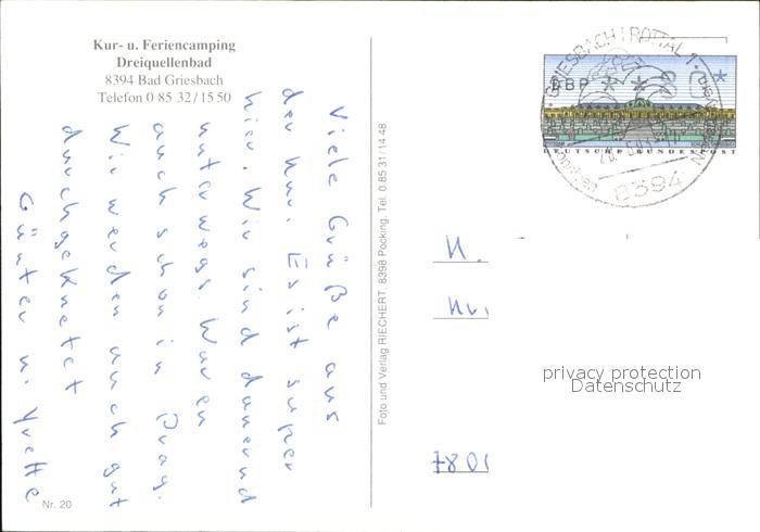 72598244 alte Postkarte Bad Griesbach Rottal Kur- und Feriencamping Dreiquellenbad postalisch gelaufen Erhaltung siehe scans [LiesaD40] KatCode: 11110009275124