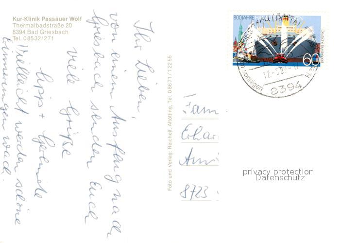 73176176 alte Postkarte Bad Griesbach Rottal Kurklinik Passauer Wolf postalisch gelaufen Erhaltung siehe scans [NatalD47] KatCode: 11110009275124