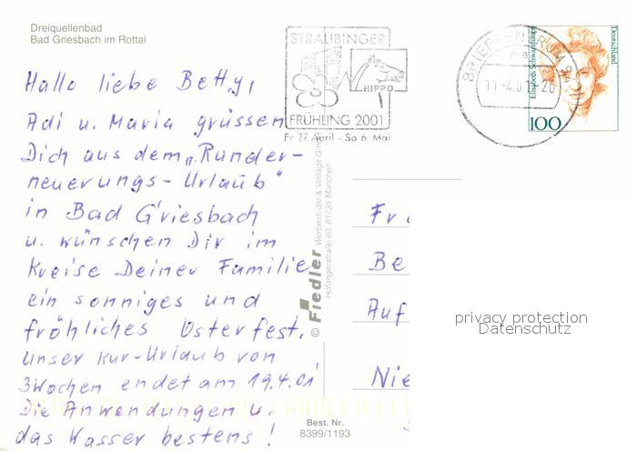 72755438 alte Postkarte Bad Griesbach Rottal Kurmittelhaus Dreiquellenbad postalisch gelaufen Erhaltung siehe scans [WerneD78] KatCode: 11110009275124