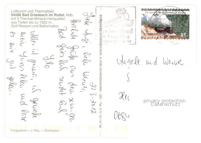 73754503 alte Postkarte Bad Griesbach Rottal Luftkurort Thermalbad Kurhaus Hotels Ballon postalisch gelaufen Fliegeraufnahme Erhaltung siehe scans [FriedD77] KatCode: 11110009275124