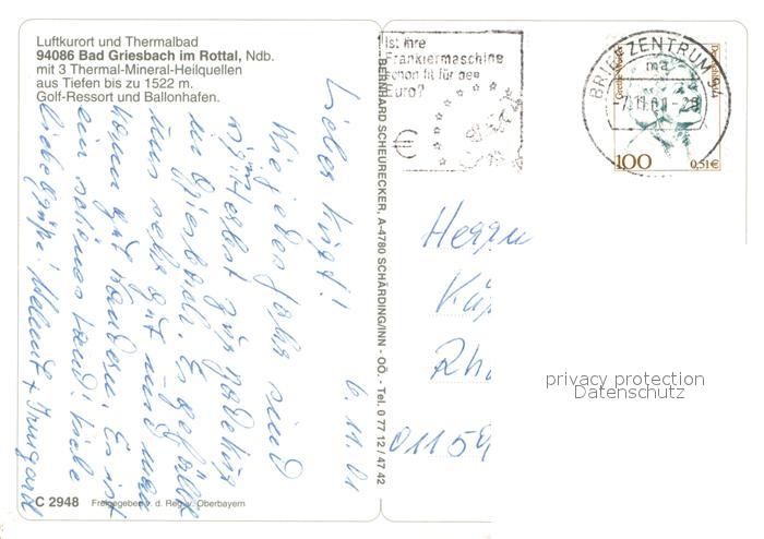 73714324 alte Postkarte Bad Griesbach Rottal Mineral Thermal Heilquellen Golf Resort und Ballonhafen Fliegeraufnahme postalisch gelaufen Erhaltung siehe scans [WerneD78] KatCode: 11110009275124