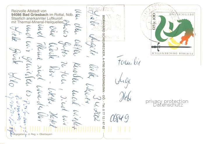 73754496 alte Postkarte Bad Griesbach Rottal Panorama Luftkurort Altstadt postalisch gelaufen Fliegeraufnahme Erhaltung siehe scans [FriedD77] KatCode: 11110009275124