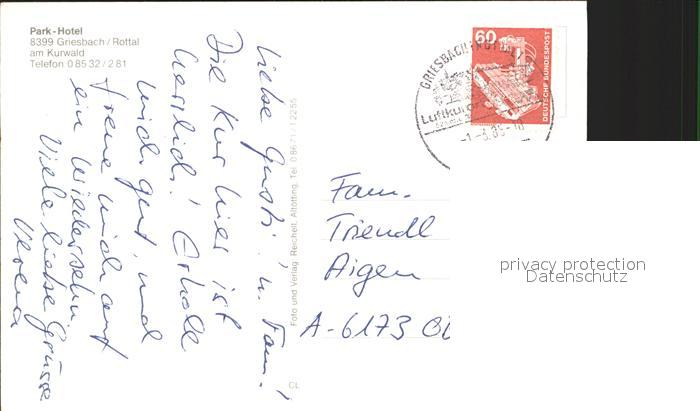 72146425 alte Postkarte Bad Griesbach Rottal Park Hotel Griesbach Swimmingpool Hallenbad postalisch gelaufen Erhaltung siehe scans KatCode: 11110009275124