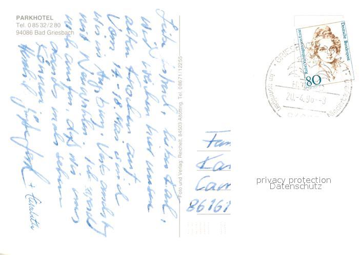 73167295 alte Postkarte Bad Griesbach Rottal Parkhotel am Kurwald Swimming Pool Hallenbad Kapelle postalisch gelaufen Erhaltung siehe scans [FriedD77] KatCode: 11110009275124