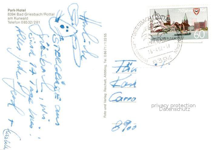 73167294 alte Postkarte Bad Griesbach Rottal Parkhotel am Kurwald Swimming Pool Hallenbad postalisch gelaufen Erhaltung siehe scans [FriedD77] KatCode: 11110009275124