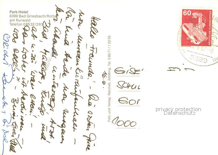 73767851 alte Postkarte Bad Griesbach Rottal Parkhotel Swimming Pool Hallenbad postalisch gelaufen Erhaltung siehe scans [FriedD77] KatCode: 11110009275124