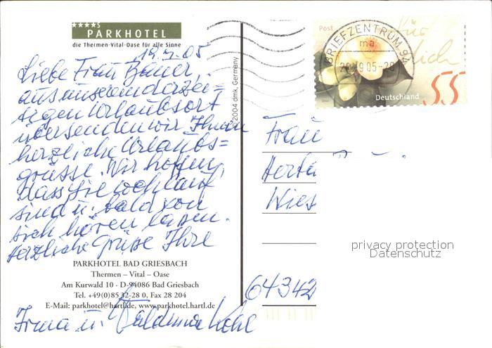 alte Postkarte Bad Griesbach Rottal Parkhotel postalisch gelaufen Erhaltung siehe scans