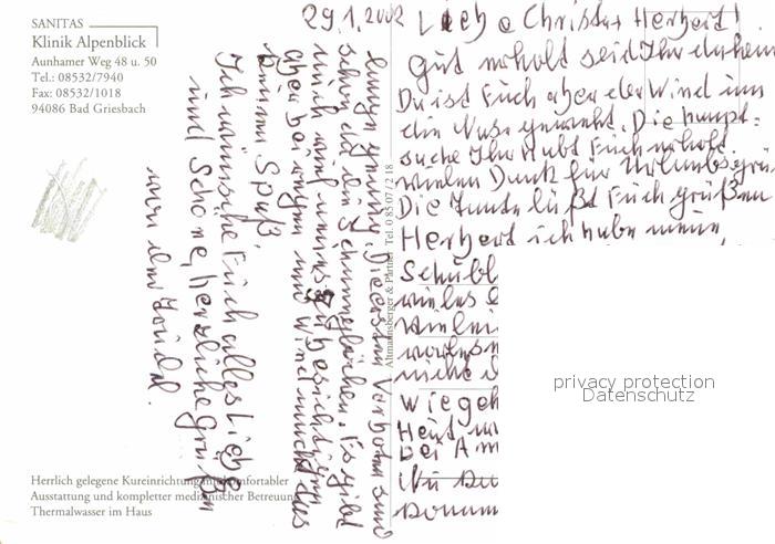 72785203 Bad Griesbach Rottal Sanitas Klinik Alpenblick postalisch nicht gelaufen Erhaltung siehe scans [FriedD77] KatCode: 11110009275124