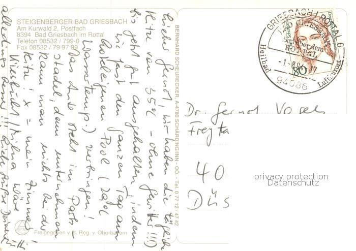 73785776 alte Postkarte Bad Griesbach Rottal Steigenberger Hotel Fliegeraufnahme Gastraum Hallenbad postalisch gelaufen Erhaltung siehe scans [WerneD78] KatCode: 11110009275124
