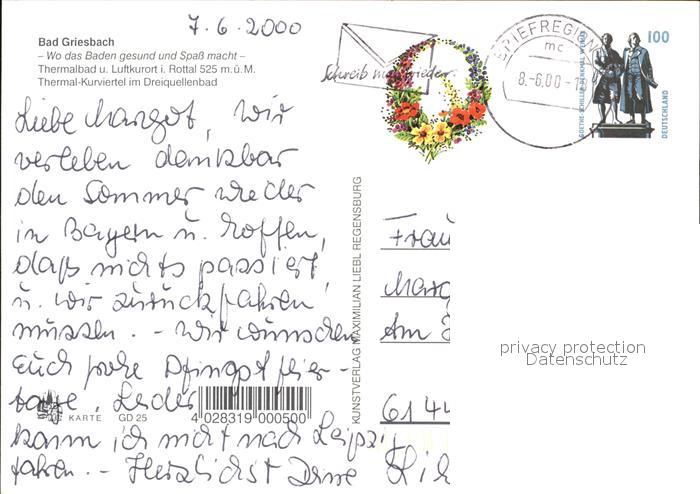 alte Postkarte Bad Griesbach Rottal Thermal Kurviertel postalisch gelaufen Erhaltung siehe scans