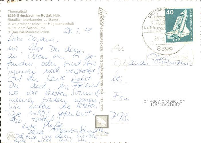 72296378 alte Postkarte Bad Griesbach Rottal Thermalbad Luftkurort Wappen Fliegeraufnahme postalisch gelaufen Erhaltung siehe scans KatCode: 11110009275124