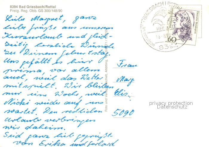 73686111 alte Postkarte Bad Griesbach Rottal postalisch gelaufen Erhaltung siehe scans [WerneD78] KatCode: 11110009275124