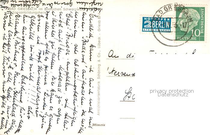 73788766 alte Postkarte Bad Griesbach Schwarzwald Dioezesanbildungsheim Aussenansicht postalisch gelaufen Erhaltung siehe scans [LiesaD40] KatCode: 11110008317126