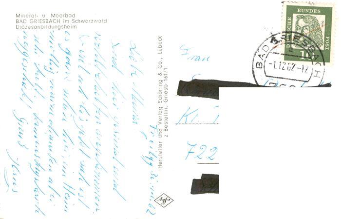 73911527 alte Postkarte Bad Griesbach Schwarzwald Dioezesanbildungsheim Teilansichten postalisch gelaufen Erhaltung siehe scans [WerneD78] KatCode: 11110008317126