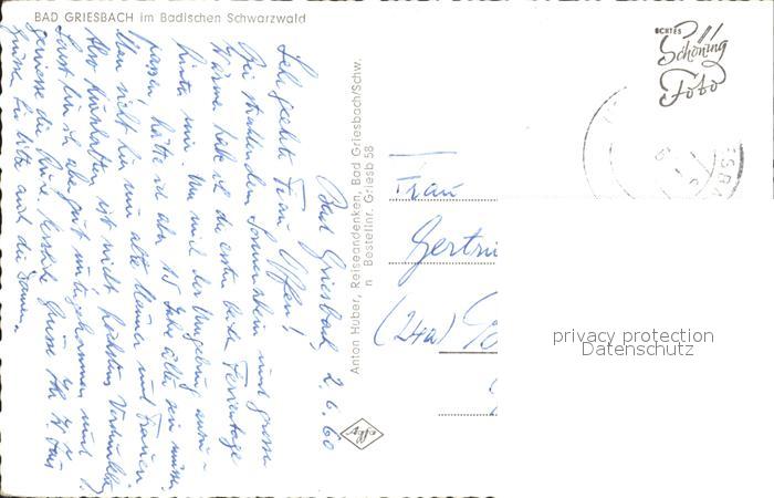 72198713 alte Postkarte Bad Griesbach Schwarzwald Dorfansicht postalisch gelaufen Erhaltung siehe scans KatCode: 11110008317126