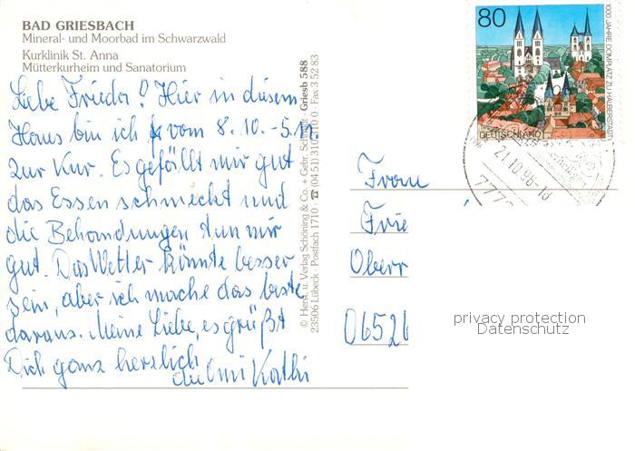 73834099 alte Postkarte Bad Griesbach Schwarzwald Kurklinik St Anna Muetterkurheim Sanatorium postalisch gelaufen Erhaltung siehe scans [FriedD77] KatCode: 11110008317126