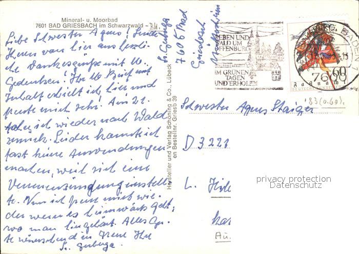 72351636 alte Postkarte Bad Griesbach Schwarzwald Mineral und Moorbad Teilansichten postalisch gelaufen Erhaltung siehe scans KatCode: 11110008317126