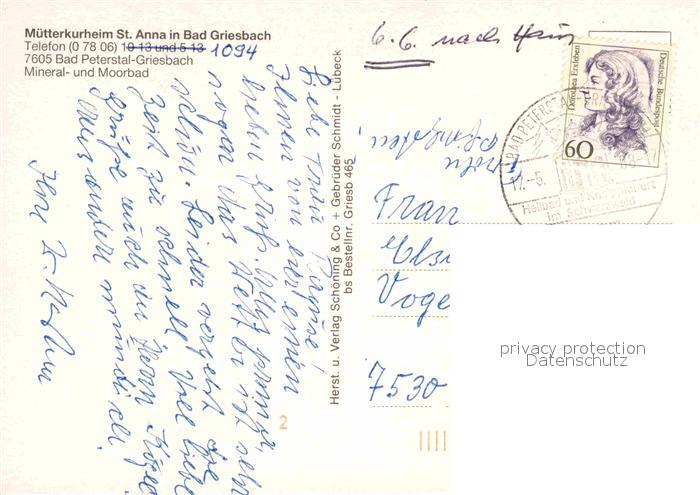 72896938 alte Postkarte Bad Griesbach Schwarzwald Muetterkurheim Sankt Anna postalisch gelaufen Erhaltung siehe scans [KathaD81] KatCode: 11110008317126