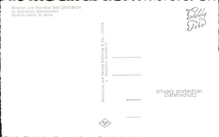 72194546 Bad Griesbach Schwarzwald Muetterkurheim St Anna postalisch nicht gelaufen Erhaltung siehe scans KatCode: 11110008317126