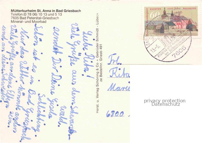 74025565 alte Postkarte Bad Griesbach Schwarzwald Muetterkurheim St. Anna postalisch gelaufen Erhaltung siehe scans [FriedD77] KatCode: 11110008317126