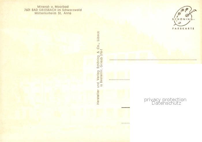 73158129 Bad Griesbach Schwarzwald Muetterkurheim St Anna postalisch nicht gelaufen Erhaltung siehe scans [WerneD78] KatCode: 11110008317126