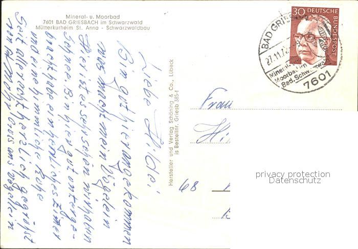 72419212 alte Postkarte Bad Griesbach Schwarzwald Muetterkurheim St Anna Schwarzwaldbau postalisch gelaufen Erhaltung siehe scans KatCode: 11110008317126