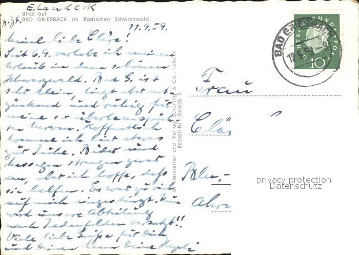 alte Postkarte Bad Griesbach Schwarzwald Panorama postalisch gelaufen Erhaltung siehe scans