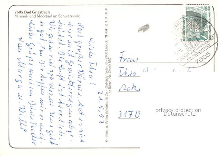 73210388 alte Postkarte Bad Griesbach Schwarzwald Panorama Wandelhalle Kurklinik postalisch gelaufen Erhaltung siehe scans [KathaD81] KatCode: 11110008317126