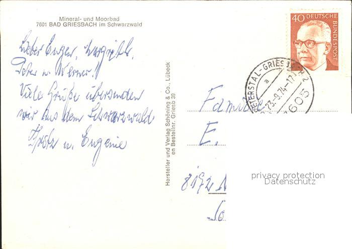 72314999 alte Postkarte Bad Griesbach Schwarzwald Teilansichten Hotel Restaurant Kirche Aussichtspunkt See postalisch gelaufen Erhaltung siehe scans KatCode: 11110008317126