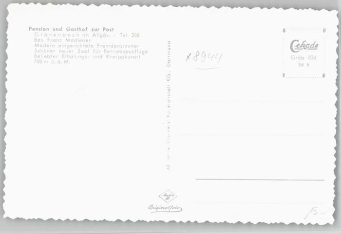 40247637 Bad Groenenbach ension Gasthof Post Postalisch nicht gelaufen Alte Ansichtskarte Postkarte Katcode 11110009778144