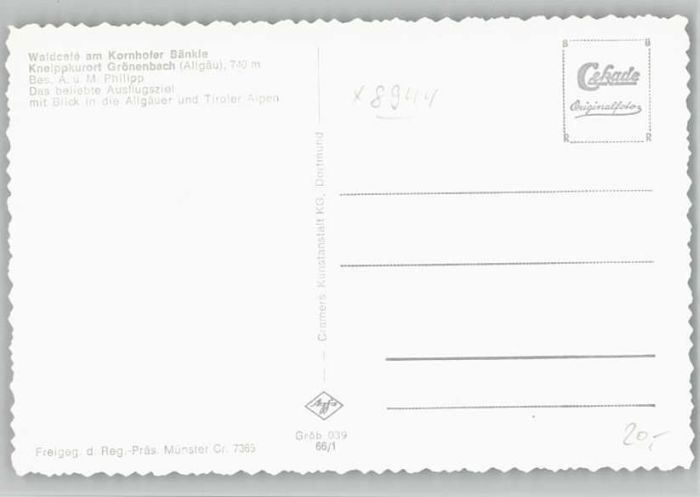 40247640 Bad Groenenbach Fliegeraufnahme Waldcafe Kornhofer Baenkle * Postalisch nicht gelaufen Alte Ansichtskarte Postkarte Katcode 11110009778144