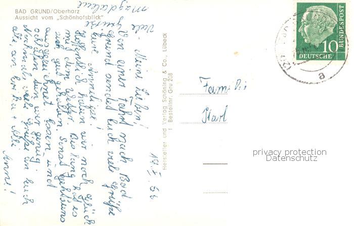 73812315 alte Postkarte Bad Grund Aussicht vom Schoenhofsblick postalisch gelaufen Erhaltung siehe scans [FriedD77] KatCode: 11110003156001