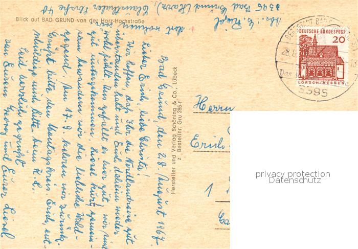 73124590 alte Postkarte Bad Grund Blick von der Harz-Hochstrasse postalisch gelaufen Erhaltung siehe scans [PaolaD17] KatCode: 11110003156001