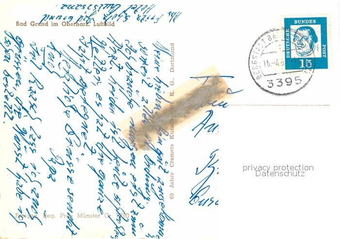72693849 alte Postkarte Bad Grund Fliegeraufnahme postalisch gelaufen Erhaltung siehe scans [NatalD47] KatCode: 11110003156001