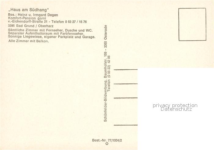 73663190 Bad Grund Gaestehaus Pension Haus am Suedhang postalisch nicht gelaufen Erhaltung siehe scans [FriedD77] KatCode: 11110003156001