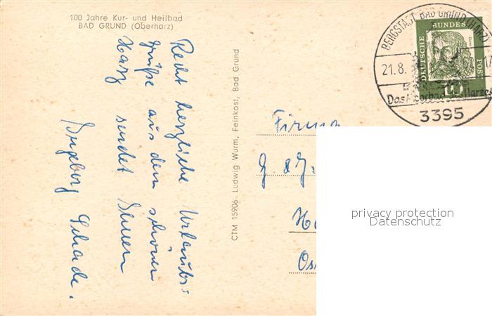 73126060 alte Postkarte Bad Grund Gesamtansicht postalisch gelaufen Erhaltung siehe scans [FriedD77] KatCode: 11110003156001